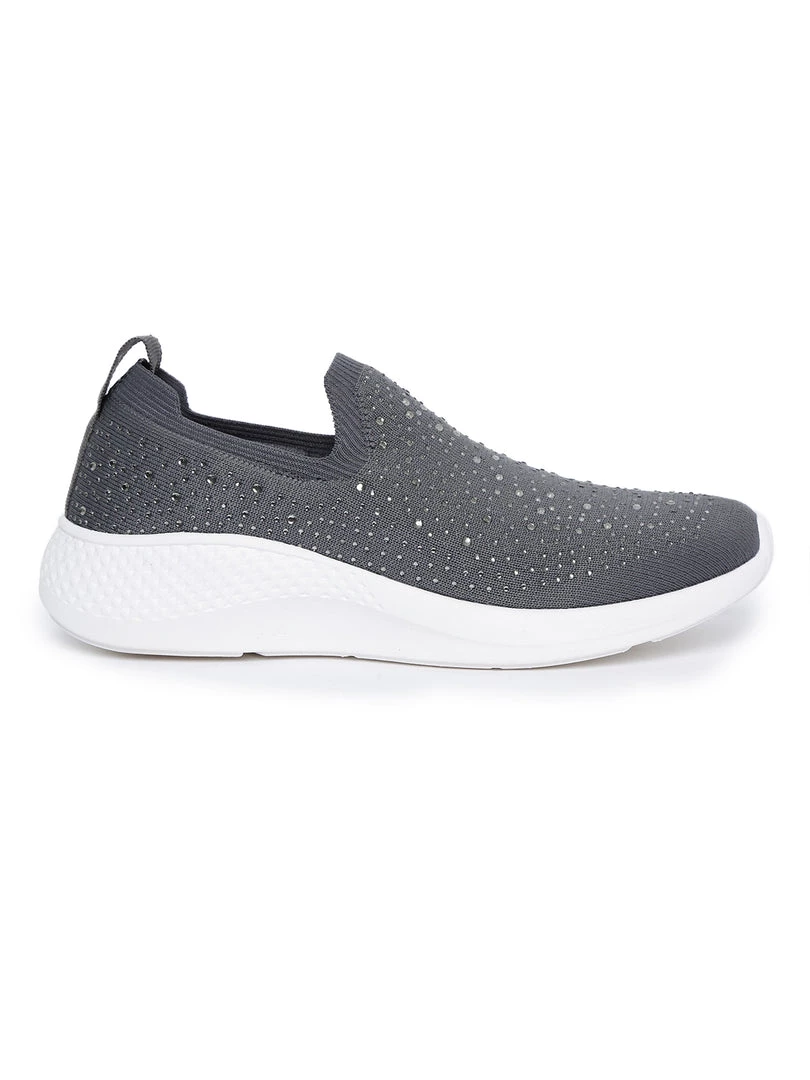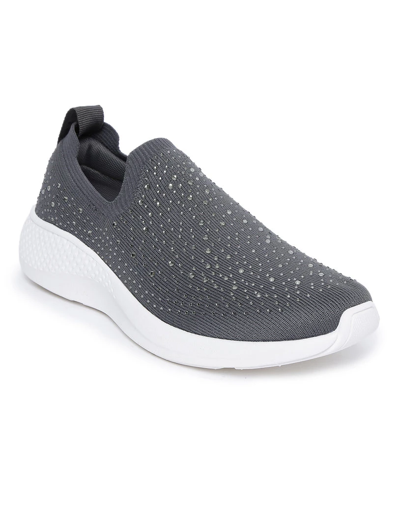 Stretchable Knitted upper with Inlaid Glitter Stones- Slipon