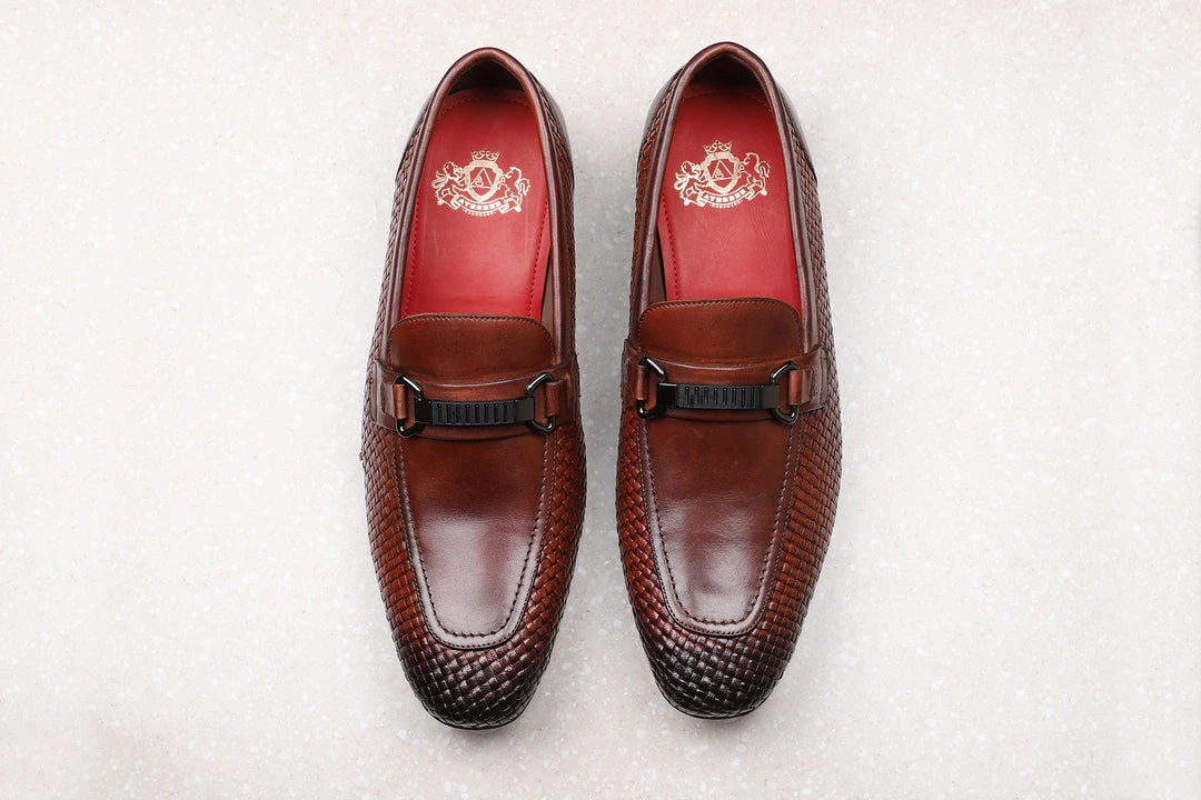 If you are someone who has a taste in vintage and fancy owning them, this is for you. The Antique Trim Slipons from Atesber just t.67akes you back in time. These slipons are as basic and authentic as it can get. Wear them to Sunday brunches, board meetings, or to a ballroom, you certainly will make heads turn. They feature trims and are available in black.