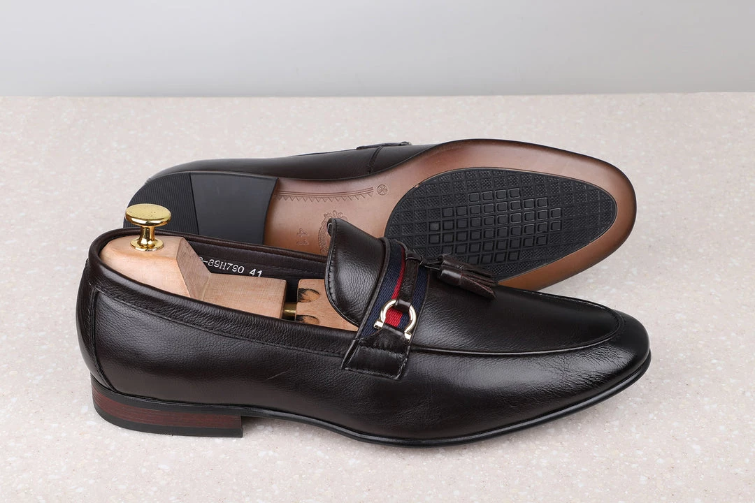 This tassel slip ons are the perfect answer to your search for a formal but contemporary look. The brown colour makes it look elegant & the tassel makes it stylish. They are good to go with formals & semi-formals. So go nail that look.