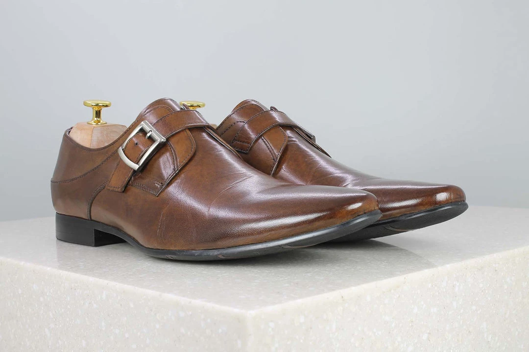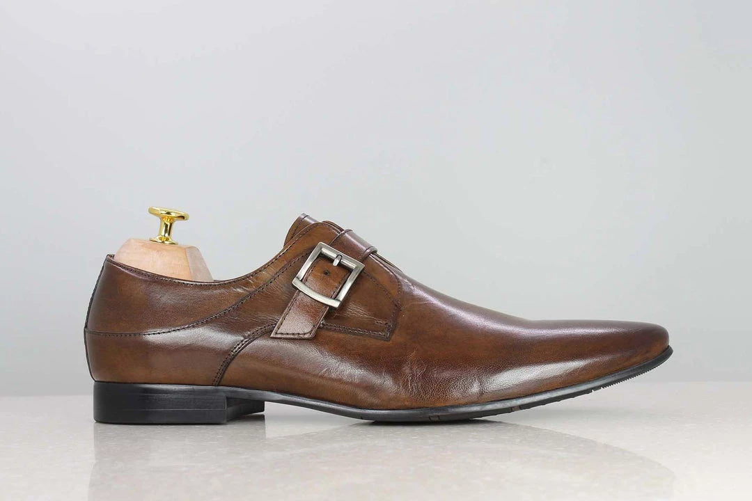 Presenting Single Buckle Monk Shoes by Atesber. They look great and add flamboyance to your style. They are unique and feature double buckle for the best fitting you can get. They are made of genuine leather and are made for all formal and casual occasions. You can pair them with almost anything. They come in Brown.