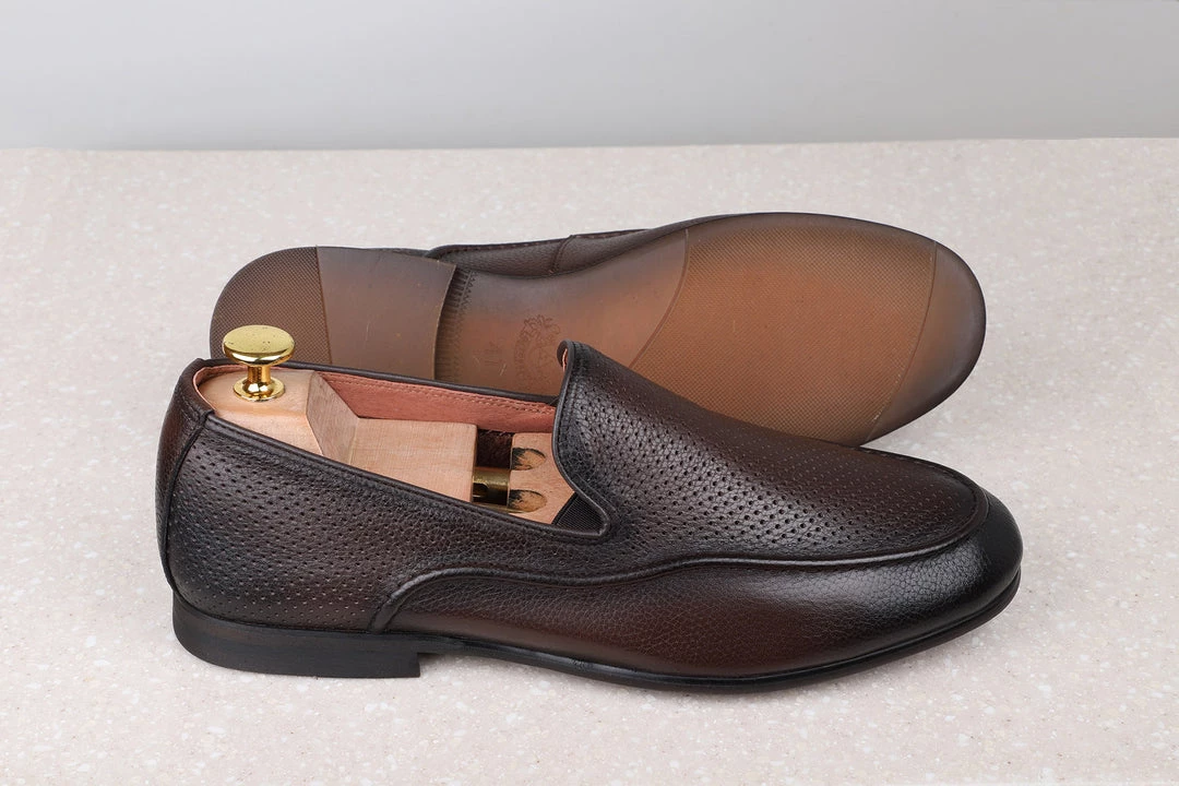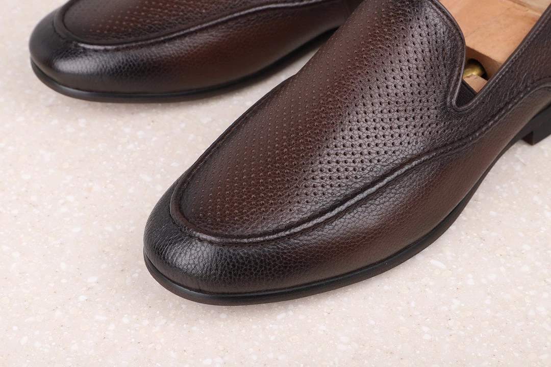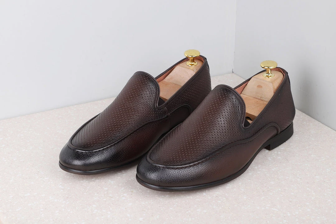 Presenting premium Slippons from Atesber.They are made from genuine leather To top it up,they are available in Coffee colour. So wear them to work, dinner parties, and all and every formal occasion. So make a mark with these Slippons.