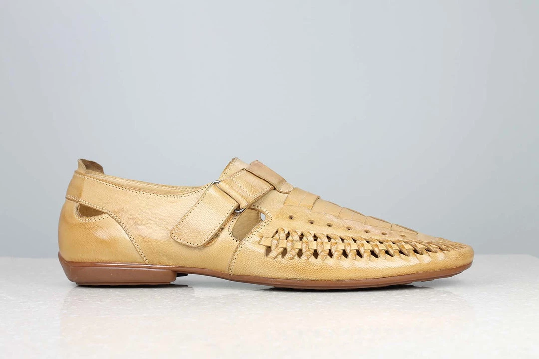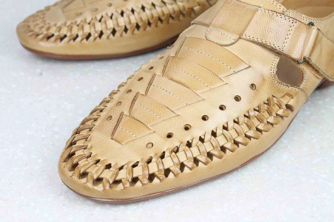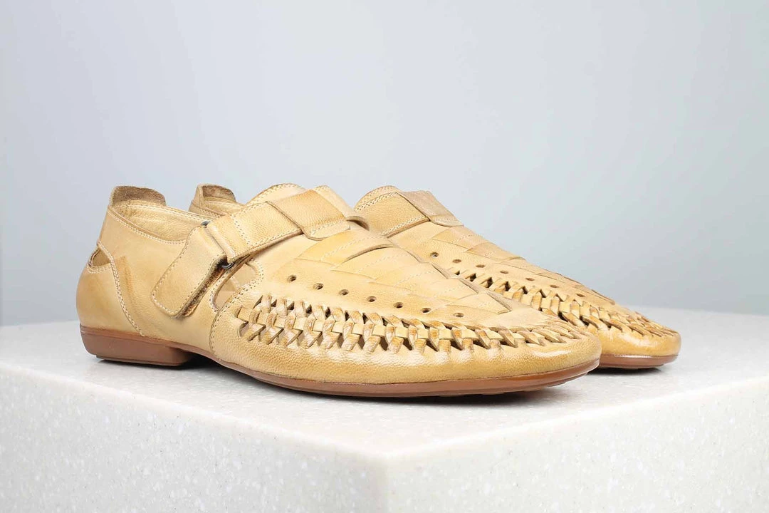 Grace any occasion with these interlace sandals. They are made from genuine leather and the interlace design gives them a stylish look for any formal occasion. The apricot colour is quite unique and adds a charm. They can be worn with formals, smart casuals, ethnic wear including dhotis.