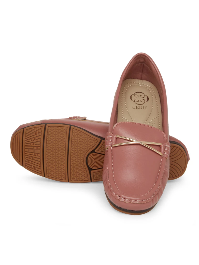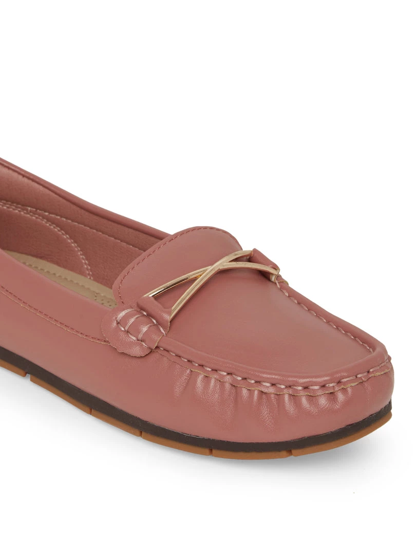 The ever-so-stylish redwood shade is the perfect companion to all your breezy ensembles. The round toe design comes with a bold metallic embellishment on the front.