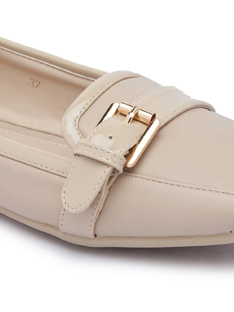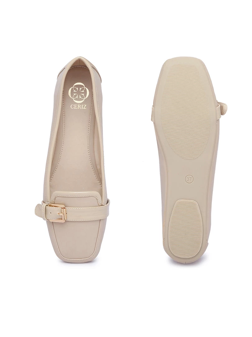 Formals or casuals, ballerinas always have you covered.With the classy design and minimalistic golden embellishment, Rosa Beige Ballerinas are one pair of flat sandals for women you should definiely not skip out on! Buy the pair today!