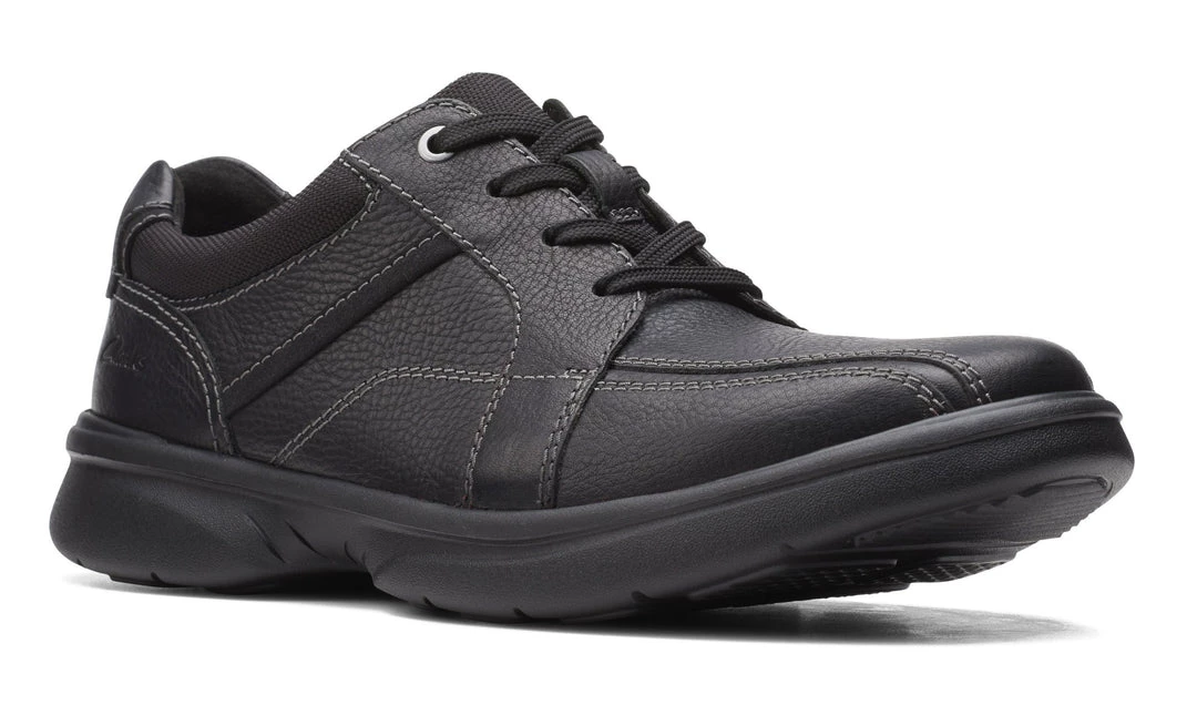 This active style combines a full grain black tumbled leather and textile upper with a lightweight, durable EVA outsole. As an Ultimate Comfort style, it has a moisture-wicking, impact-reducing OrthoLite® footbed.
