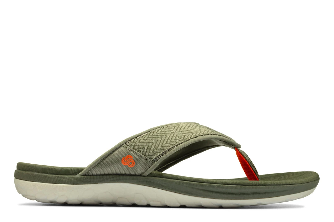 Step Beat Dune, brown textile, men’s sandals – This airy Cloudsteppers™ flip-flop features a stretchy textile upper and a cushy EVA footbed that soaks up impact without adding weight. Its exceptionally light weight makes it perfect for packing.