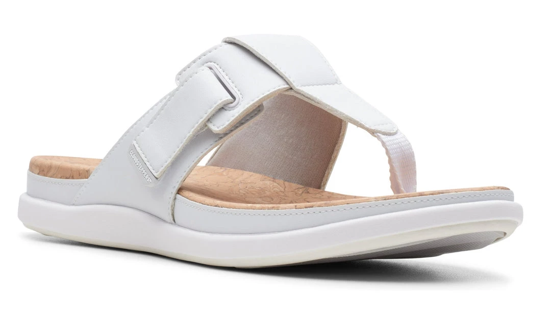 Step June Reef, women’s sandals, white synthetic – This hybrid Cloudsteppers™ sandal combines a thong strap with an easy hook and loop closure, allowing it to strike the perfect balance between style and ease. Feet stay in plush, lightweight comfort thanks to layers of Cushion Soft™ padding with an EVA footbed.