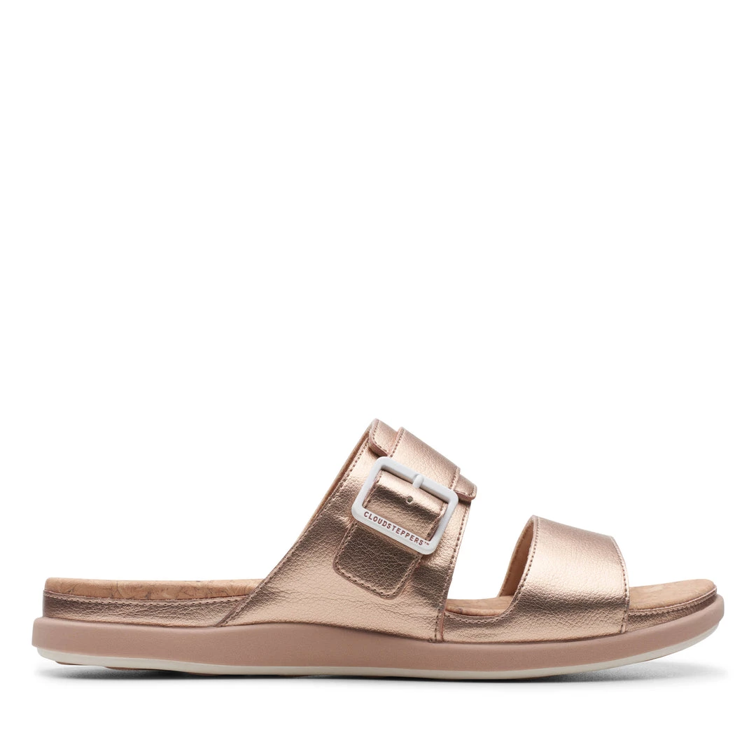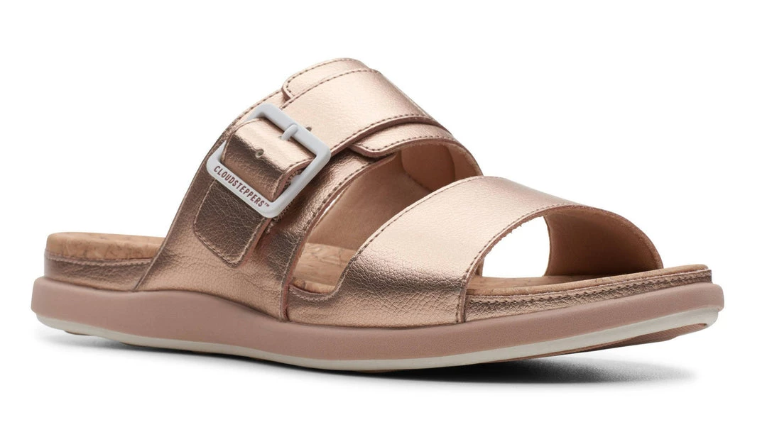 Step June Tide, women’s sandals, rose gold synthetic – This feather-light Cloudsteppers™ sandal benefits from a classic design and a simple buckle closure. Its layers of Cushion Soft™ padding with an EVA footbed bring plush comfort to each step without adding bulk.