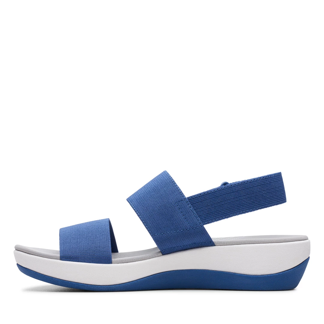 Arla Jacory, women’s sandals, blue elastic fabric – Soft, stretchy elastic straps and a hook and loop closure give this Cloudsteppers™ sandal a fit that’s as easy as it is secure. It gets a major comfort boost thanks to Cushion Soft™ padding, and an EVA midsole and outsole give it an airy, light weight you’ll have to hold to believe.