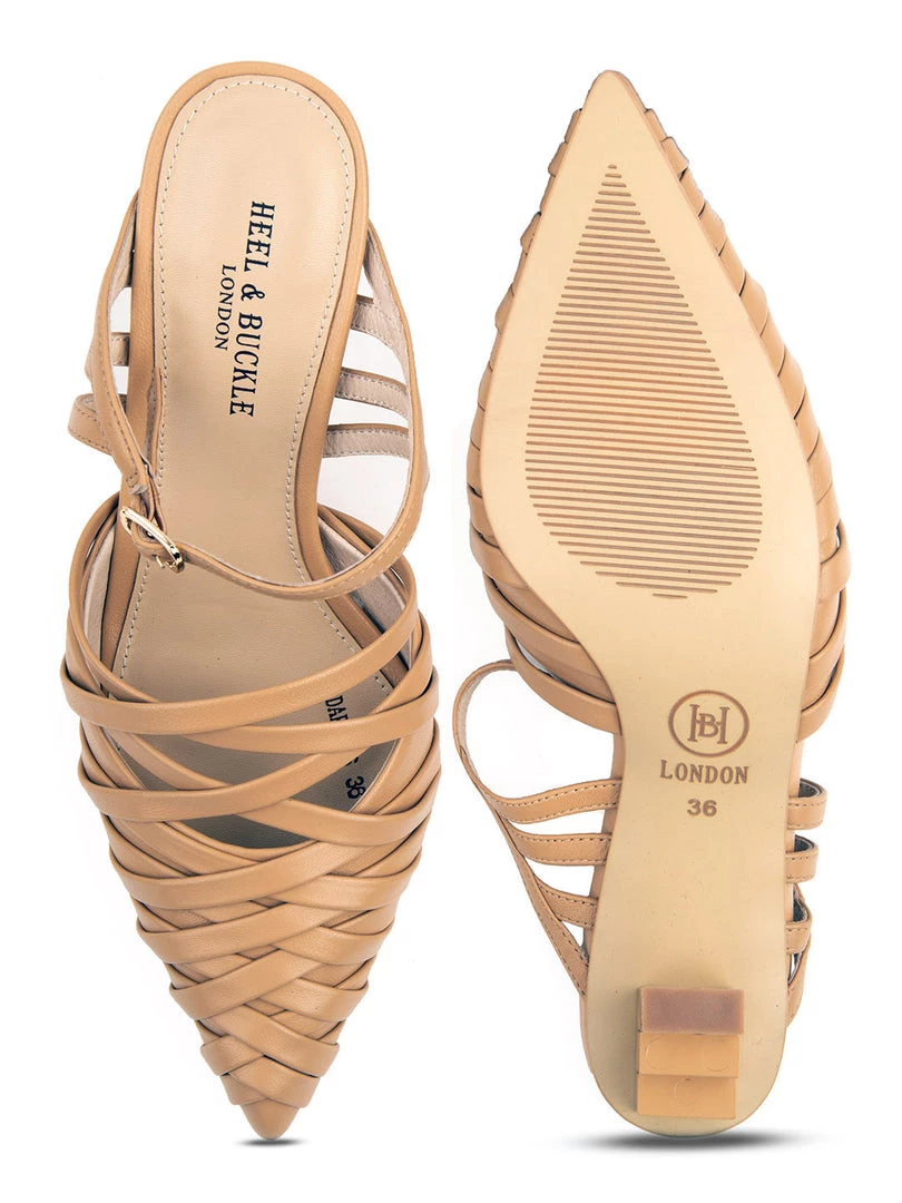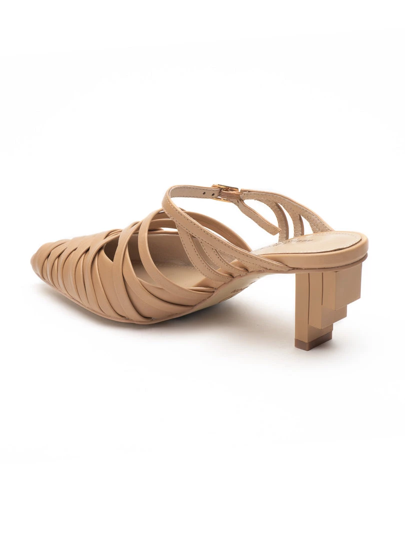 Slip into these sophisticated and urbane styled beige silhouette which are a combination of comfort and modern edge. Crafted with leather strapped design with a pointed toe, these sandals feature stylized heel, keeping in mind the ease to walk. Pair these with you denims or any other casual outfit and slay in style.
