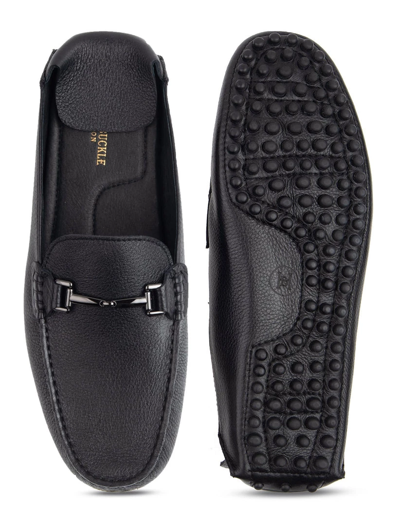 The jazzy black slip-ons are easy to wear with your favorite casual pants and shorts. The handmade slip on with horsebit buckle will surely make your evening trendy.