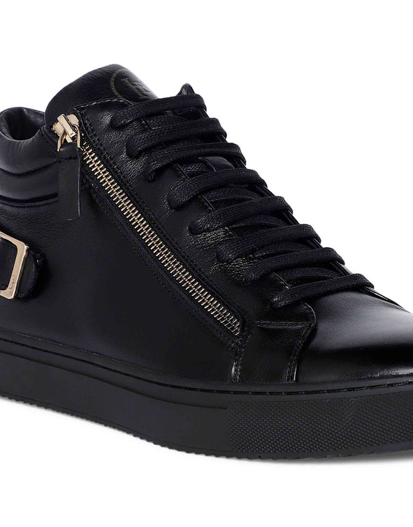 A luxe take on high-top sneakers, this pair will lend an instant vogue to off-duty looks. Designed in supple patent leather with the contemporary zip detailing, you are sure to be the center of attraction amongst the fashion elite. Pair them with slim jeans and an oversized sweatshirt for a trendsetting look.