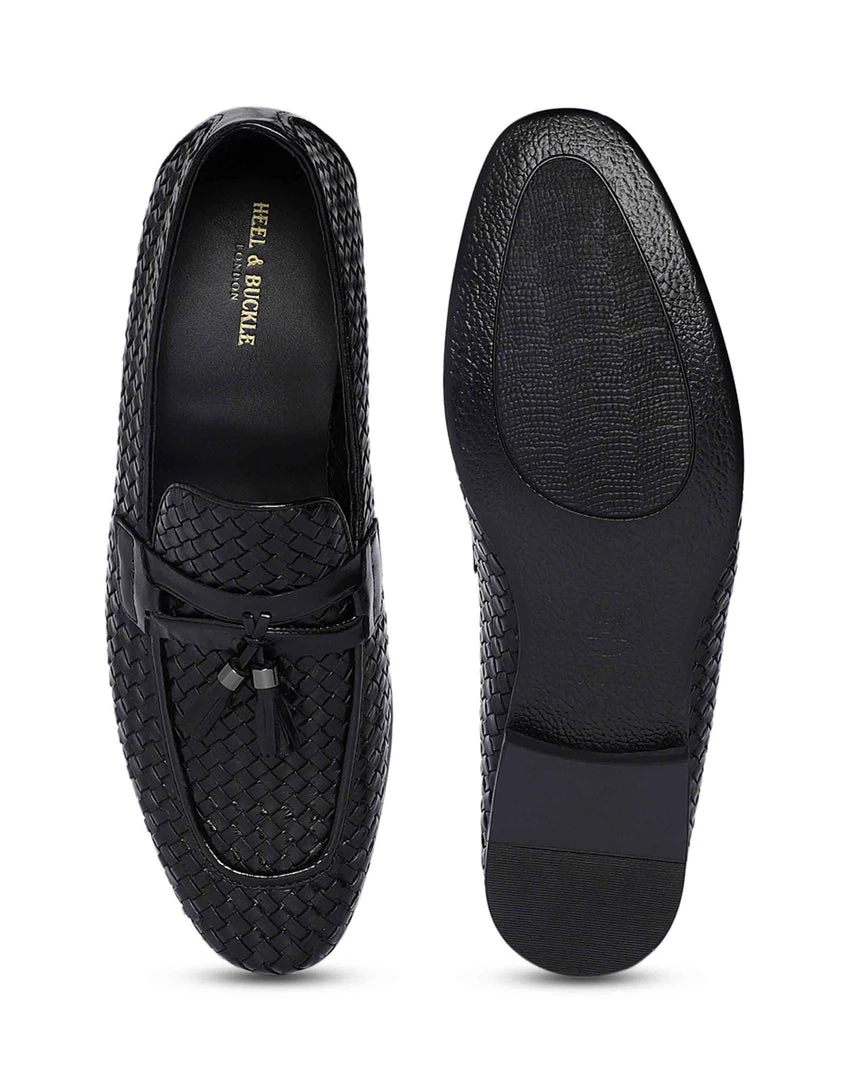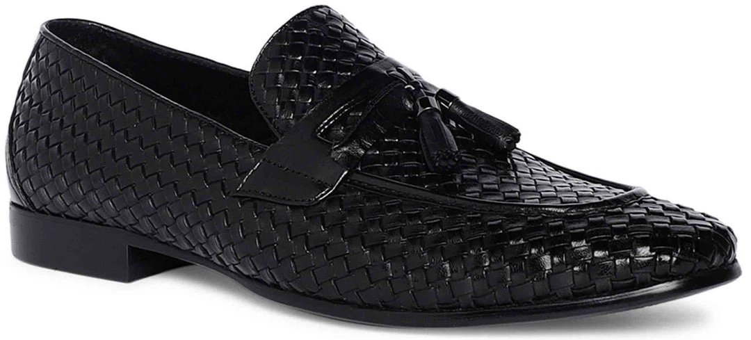Opt for a smart and contemporary style with a defined woven texture and adorned with a pair of fringed tassels. A round toe and a low block heel completes the design. This urbane shoe will work equally for off-duty as it will with formal ensembles