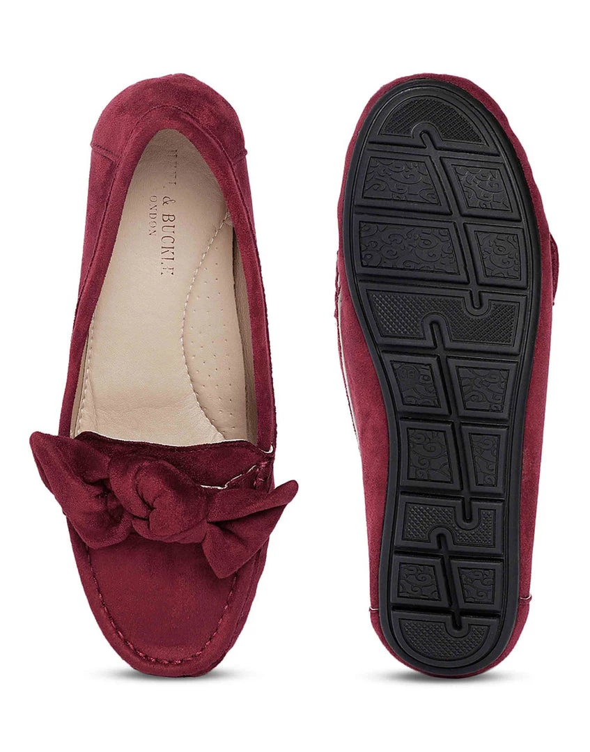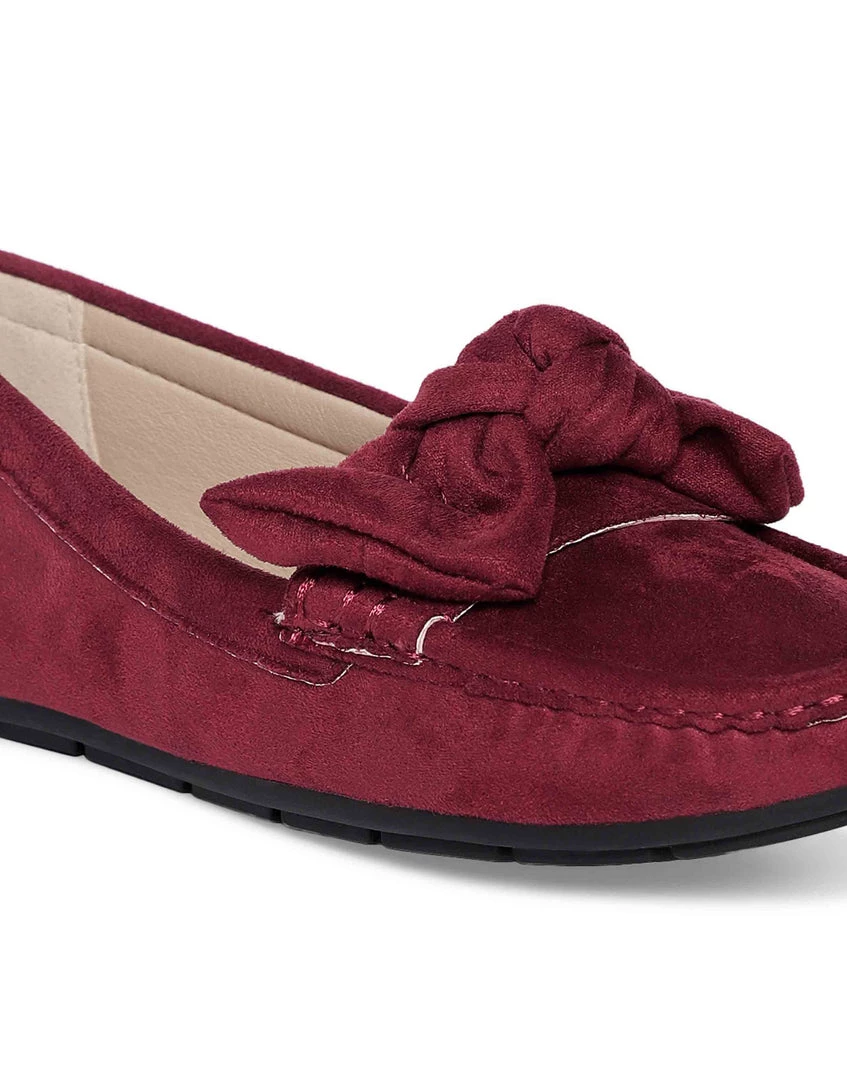 Keep your look classic and ballerina-chic with the bow-embellished suede flats. The round-toe slip-ons with a cushioned insole adds comfort to every step. Team these with your casual outfit to earn some serious style points.
