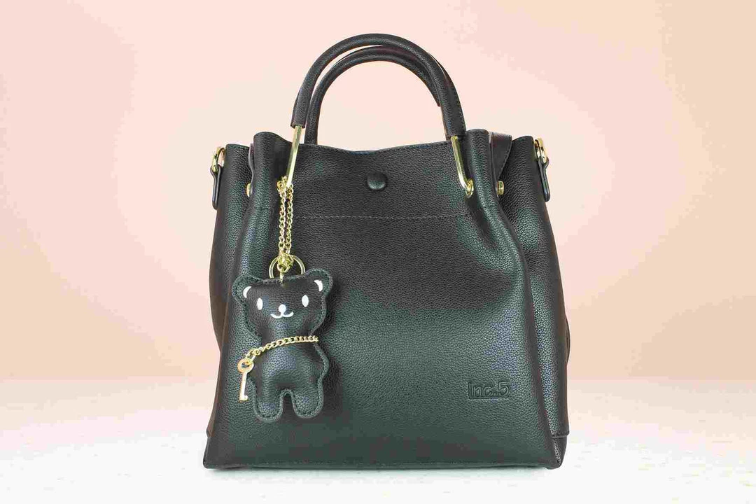 Don’t get washed away by corporates and lose your individual style. This satchel bag is your ultimate Monday to Friday bag. It has a very classy handle which gives you a very stylish yet professional look. It has more than 3-4 compartments to keep all your stuff safe. It also has straps that make this bag into a shoulder bag and the other bigger straps can make it into a satchel bag as well. It’s available in black color. It has an ornament in the shape of a cute teddy. With a very reasonable price and really good quality, make this bag yours today and start your power monday.