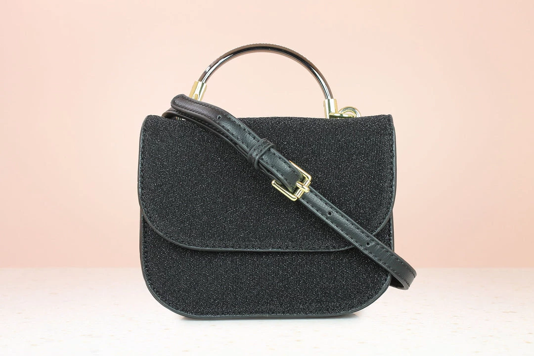 A must have in your wardrobe, this flap clutch purse is a go-with-all solution. Itメs shiny the way it should be but subtle too at the same time. This Black colored clutch purse is perfect for all your evening functions, be it a party or be it an extravagant dinner. Itメs perfect to hold you most essential stuff but also its compact size doesnメt make it look very hefty. It has an old world style handle and an adjustable strap too.
