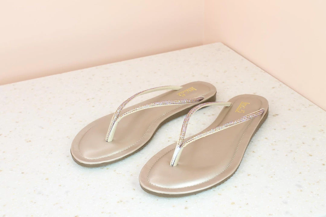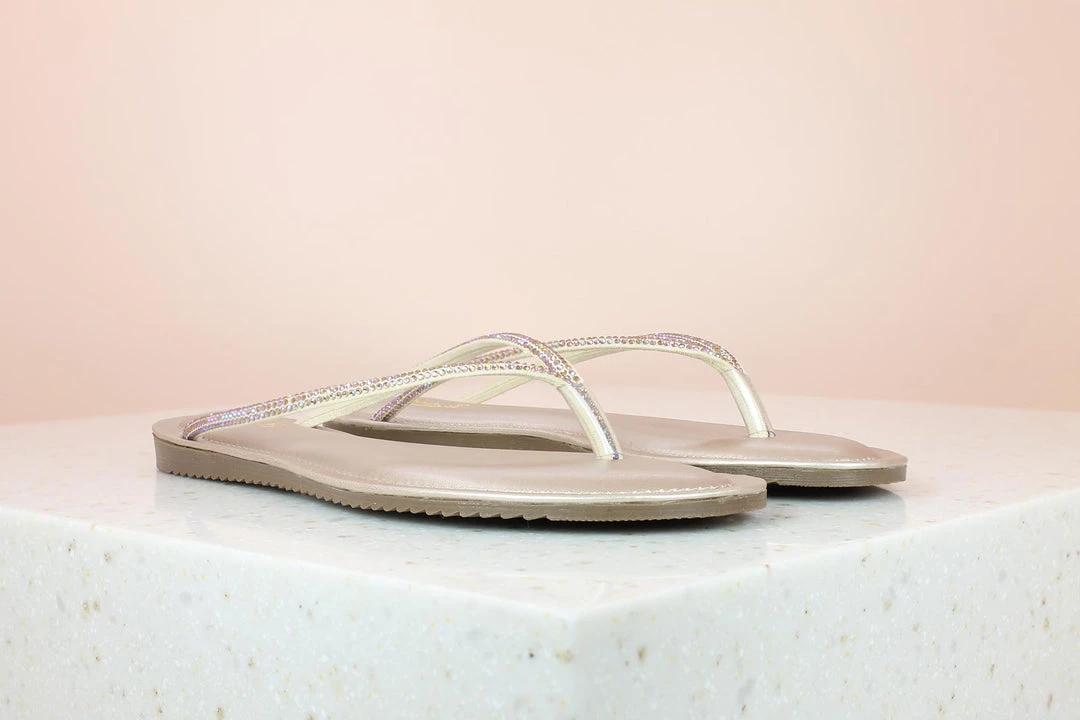 This best selling thong style is a quick fix for your evening hangouts. There is a delicate fabric with diamonds attached to the thongs which gives a classy casual look to the flats. Flats are undoubtedly more comfortable. The work is on Rose Gold as a basic color so that you can pair them up with almost all your casual wardrobe. They are available in all sizes and are very reasonable. No wonder they are one of our best selling products and you should definitely make them a part of your casual wardrobe.