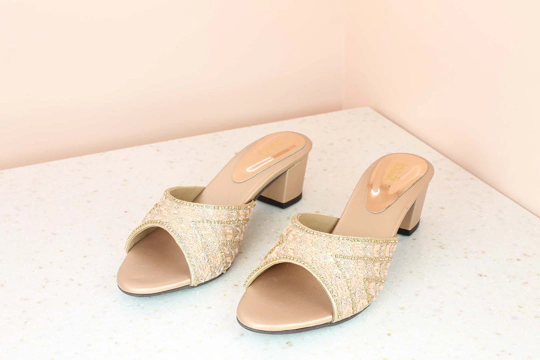 The name stands true for itself for this style. These classy sandals really have an elegant Embroidery on the front flap. and it adds to the look so much. It has a small heel, it’s Rose gold in colour and perfect for all your ethnic outfits. Be it sarees or dresses or your special function dress, these sandals will go perfectly with all of them. They look very chic and they are very reasonably priced as well.