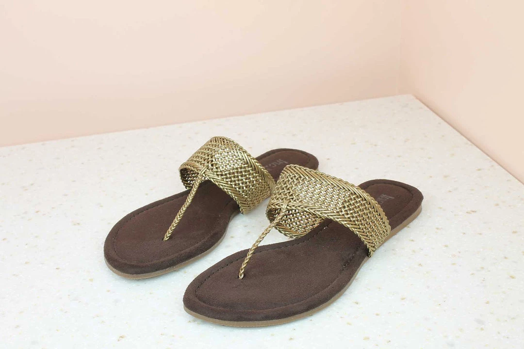 A pair of these chic ethnic Flat Woven Thongs are enough for all and every ethnic wear. Be it sarees, kurtis, or any other indie look, these flats will add a classy look to your outfit. The flats don’t hurt your feet and they are light on your pocket as well. You can get them in classy ant gold colour.