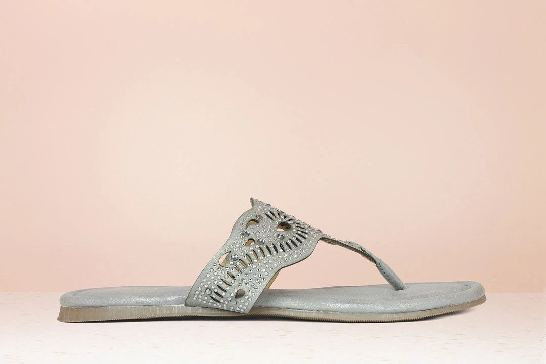 Wedding season is approaching and you are making sure your wardrobe is ready to rock all the weddings this season. Add a style which will always go with all your ethnic wear and you are good to go! These jeweled flat thongs are perfect for every occasion. They will go with your designer sarees or even fashionable gowns. The delicate jewels on the thong make them very stylish and give a beautiful finishing look to your getup. They are available in gunmetal color.