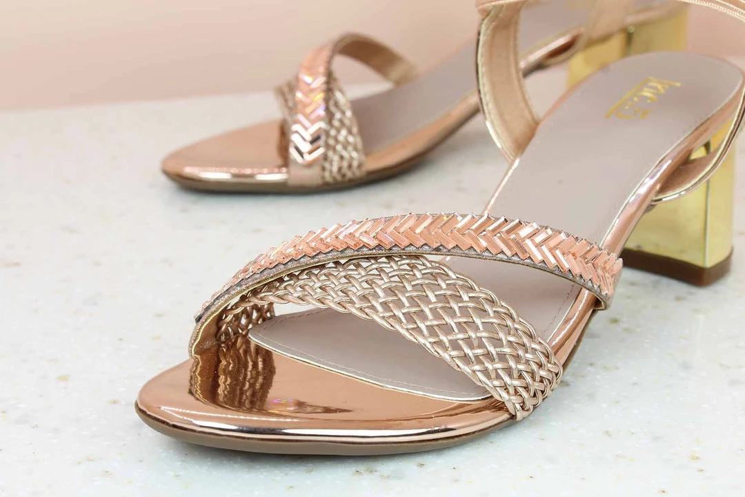 These formal woven sandals are made for anyone who has a chic choice. Be it office or party or even a friendly get-together, these comfortable yet stylish sandals are sure to make you stand out no matter where you are. These rose gold sandals with a medium heel are totally worth every penny.