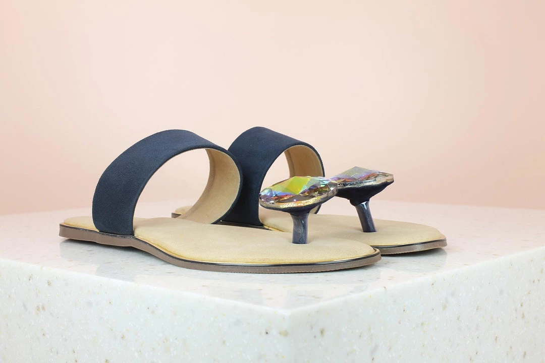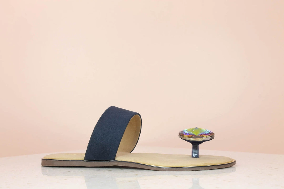 If you are going to sparkle, start with your toe! Presenting an extraordinary style of flats with an extraordinary jewel! This Kohinoor tope post style is enough for you to go out there and shine! Look at the finishing and comfort that comes with flats. Embrace any evening occasion with these flats and leave people in awe of your sense of style.The flap is in Navy Blue color. You can pair them with your party dresses and a classy handbag. They are extremely affordable and available in a wide variety of sizes. They are one of our best selling products and now you know why.