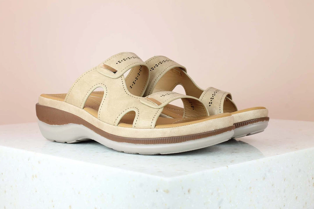 Wanting to flaunt your sporty, comfy side? Go for these M strap comfort mules. What is M strap you ask? M straps are basically a unique kind of straps that make your feet feel very comfortable. A perfect companion for your western outfits and casual clothing. You can wear them while shopping, evening outings or even to raise the score on your fitbit. They are available in Beige color and super affordable.