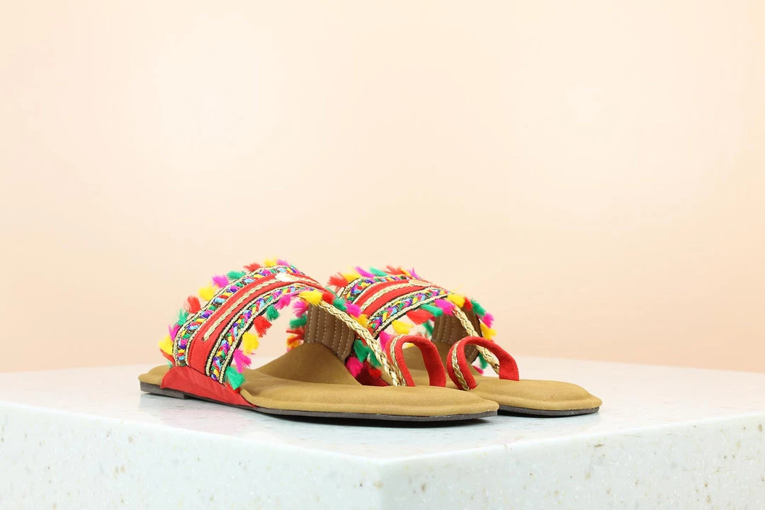 Inc.5 MULTI COLOURED FLAT KOLHAPURI-RED