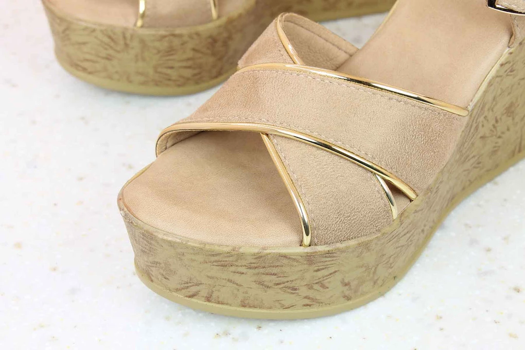 Rock every party that you go to with these super stylish platform heel sandals. They have classy criss cross straps and a buckle on the back side. You can wear them with your party dresses or even pants. They are Beige in colour so that adds up wot the classy look. They are very reasonable and because of the platform heel, don’t hurt your feet.