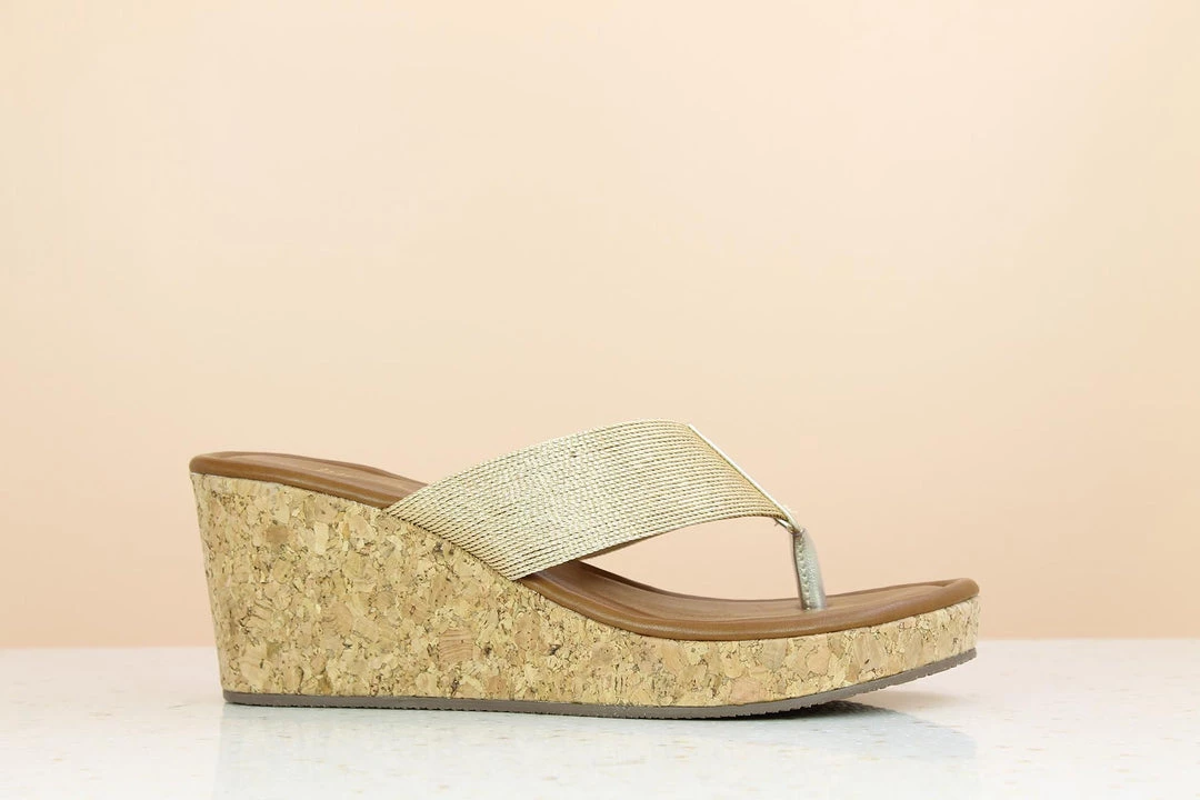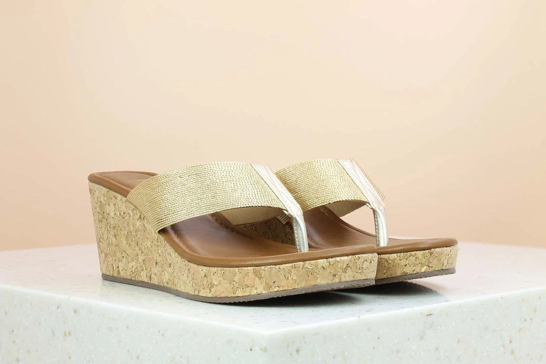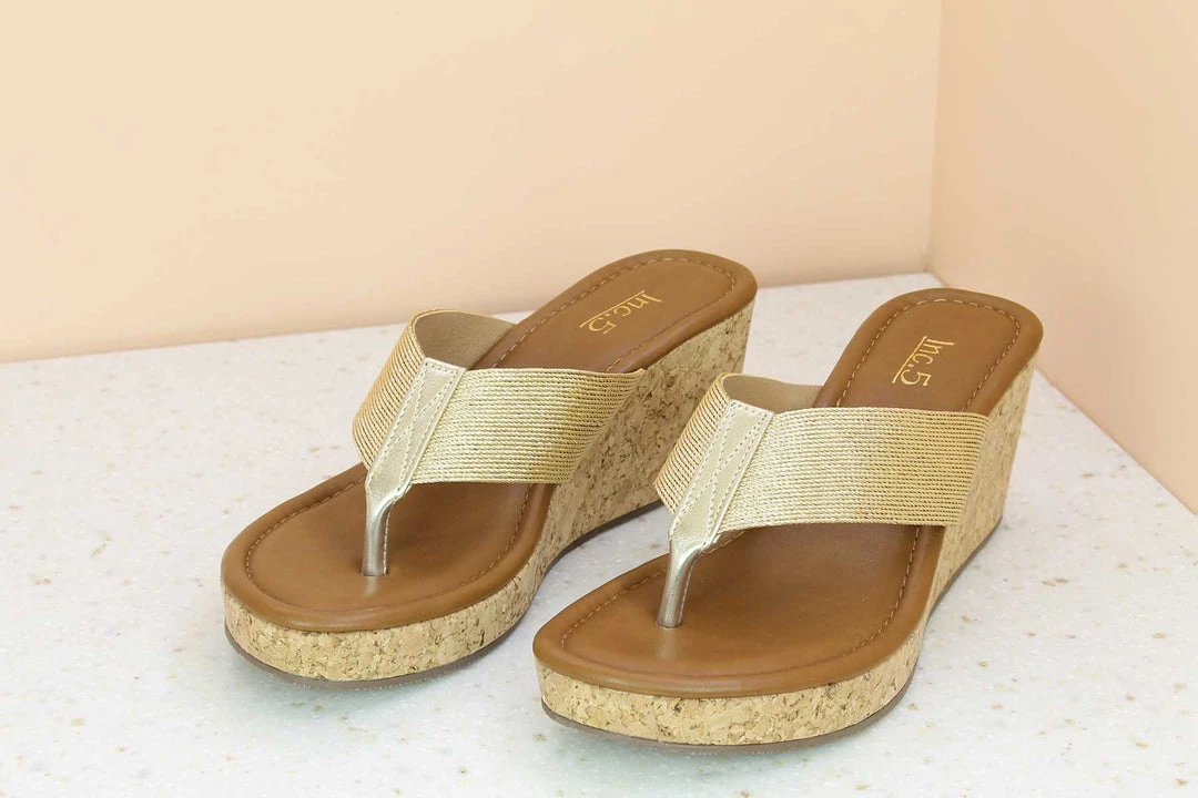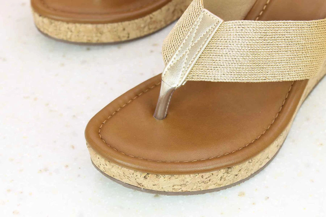 Inc.5 SALE CORK COVERED PLATFORM THONG-LIGHT GOLD