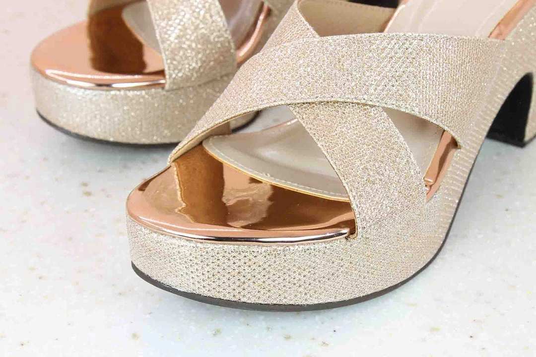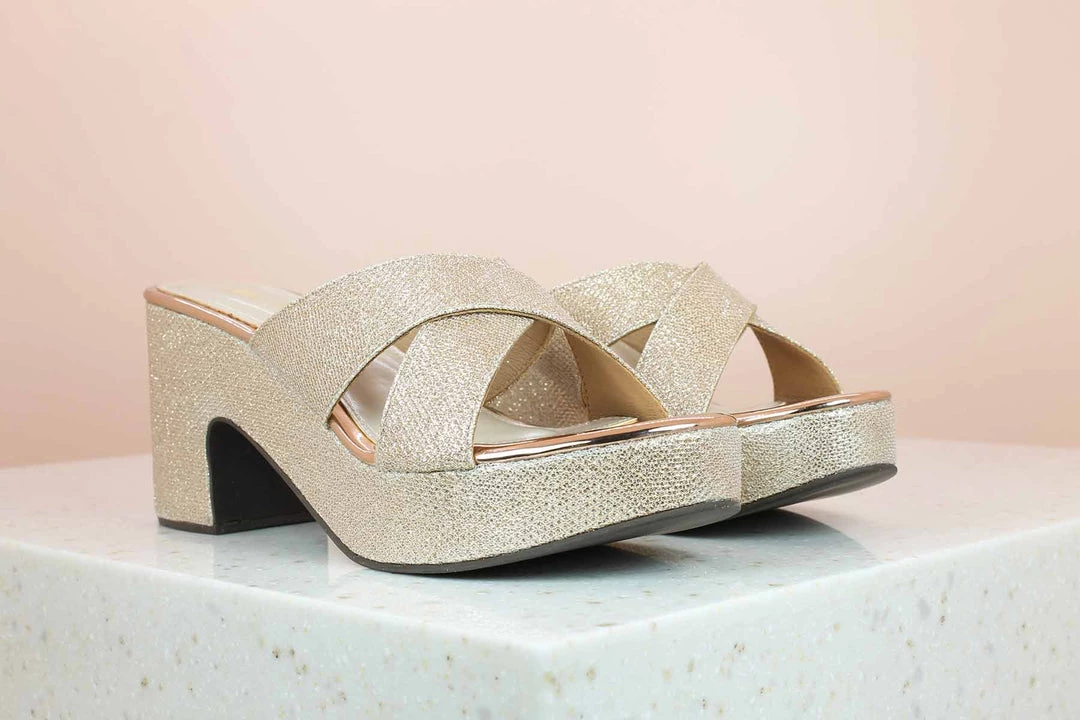 Inc.5 SALE GLITTERY CROSS STRAP PLATFORM MULES-ROSE GOLD