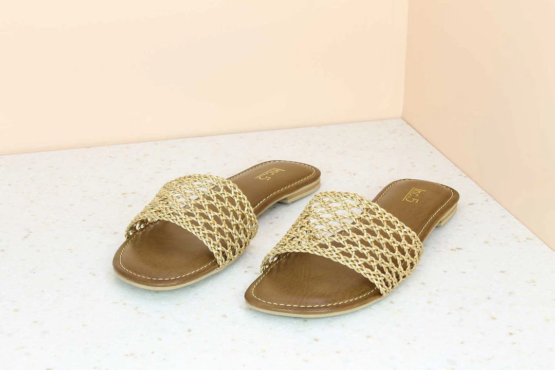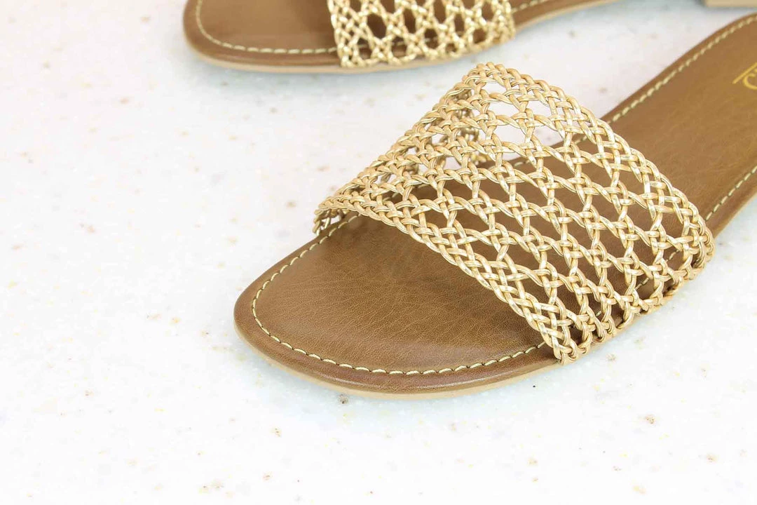 Inc.5 SALE LACE WOVEN STRAP FLAT MULE-GOLD