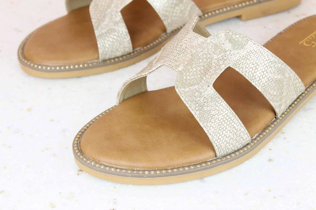 Mules with a twist! These flat mules are a perfect combination of style and comfort. They have an interesting design on its straps that looks like an enchanting snake skin. But they also help you for your grip. They are flats so they don’t hurt your feet. You can wear them with your jeans, ethnic clothes or even kurta. They are very durable and affordable too. They are available in beige color.