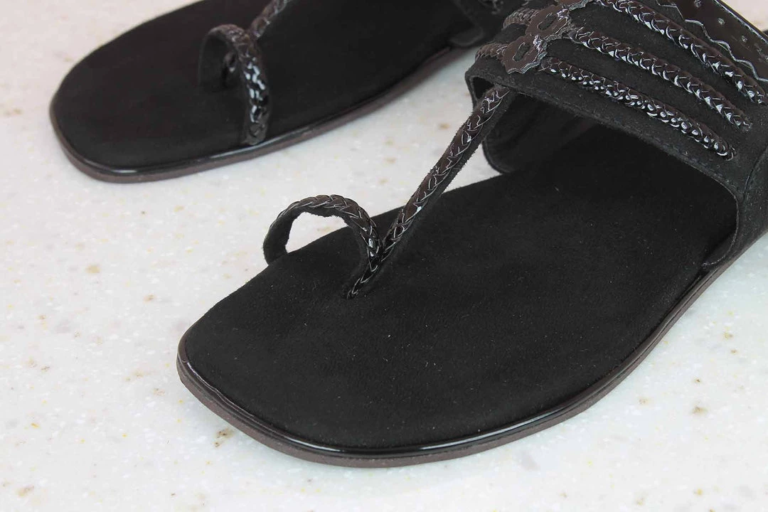 Suede and Kolhapuri style together? Oh yes, this is one of the best fusion styles and we are so excited to present it in front of you. These flats are made out of suede but the look is of a Kolhapuri style. Together they are perfect to give all the comfort to your feet and all the envious looks because of the unique style. They are available in Black color. You can use them with all your ethnic kurtas and or even your denims. Ladies, go fusion this summer!