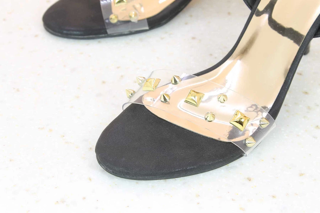 Inc.5 TRANSPARENT STUDDED SANDAL-BLACK