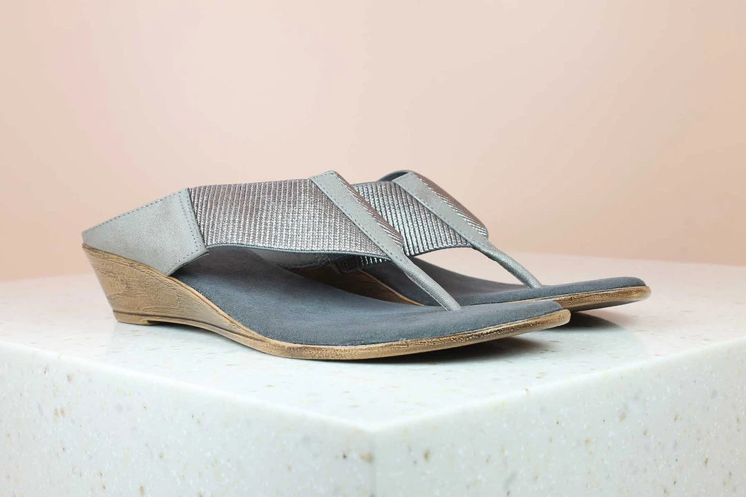 These wedge styled thongs are the perfect footwear for all your evening parties. They go very well with all the party dresses. They are elegant and classy yet very comfortable because of the small heels. They are affordable and available in gold color.
