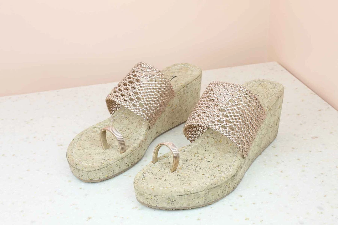 Woven platforms can never go out of fashion, can they? These chic Woven Toe Posts are perfect to be worn with all your ethnic looks and they also go with dresses. Though they feature platform heels, they don’t hurt your feet. The woven design looks very elegant. They are super comfortable and affordable and are available in rose gold colour.