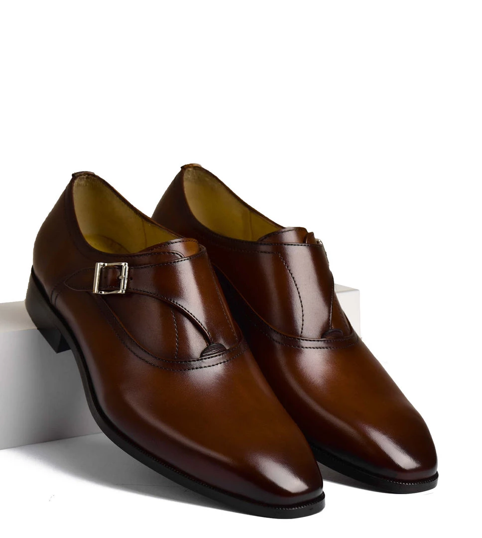 Efron Choc | Part of our Luxoro Formello Core Collection, the Efron Choc is a stunning plain toe with a slingback single monk strap. The single slim strap and elongated toe box give the shoe a sleek silhouette.