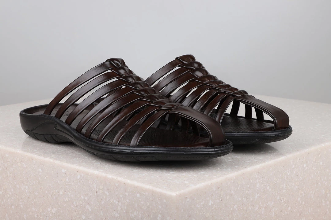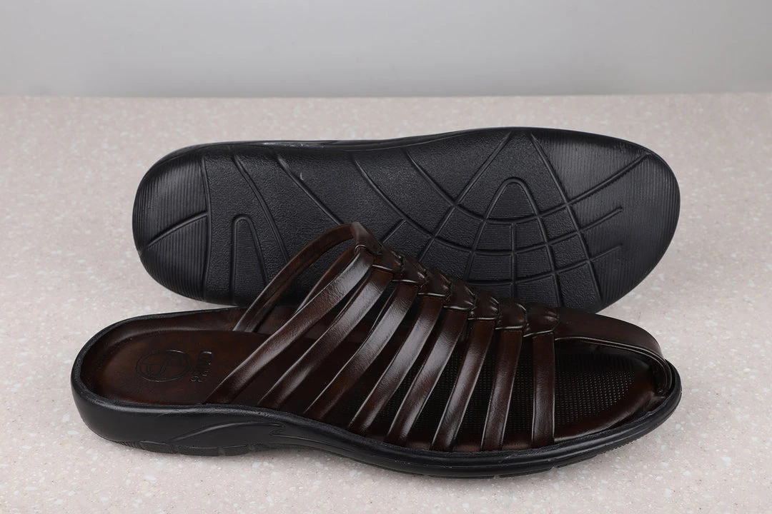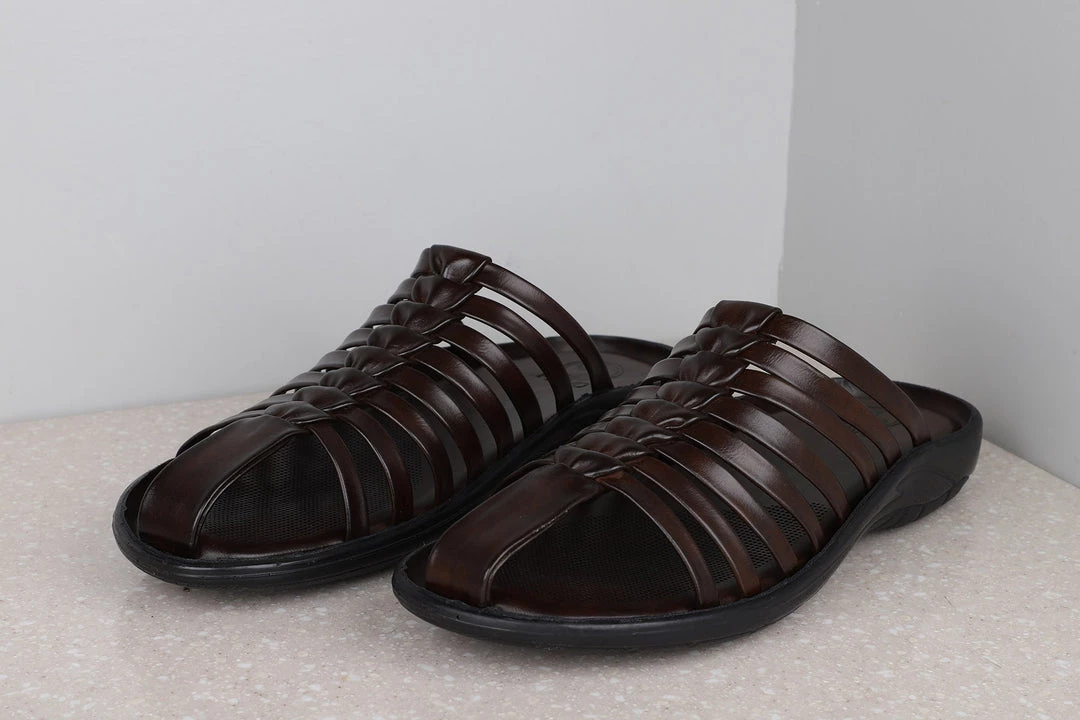 Looking for slippers that are classy and elegant? Then you have come to the right place. These Strap slippers are a good touch to the classic slippers The pattern is what does the trick. They are made for all casual occasions and you can use them even for some formal ones. They cover your feet and keep them protected. They are made from leather and feature straps to give you the right fit. Get them in brown colour.