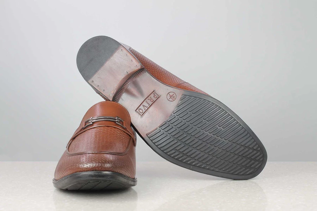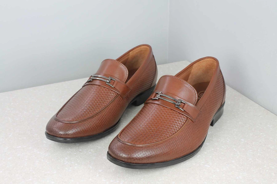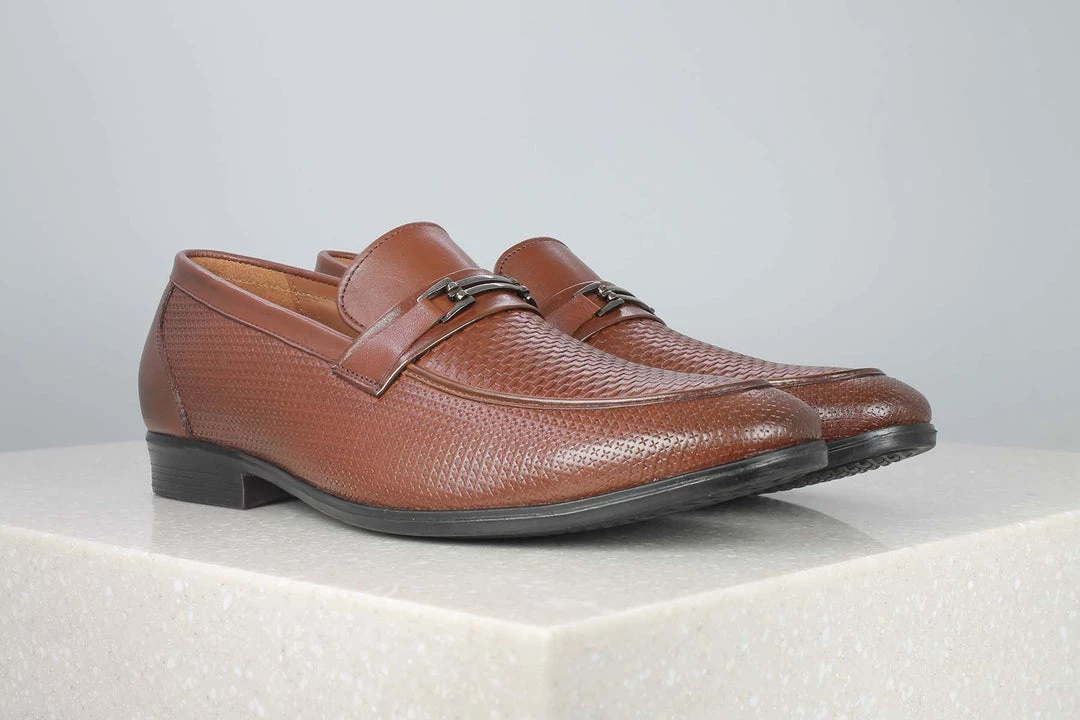 Have to crack an important meeting or rock a friday evening office party? These deep emboss slippons can be your style quotient that you carry along with you. These slippons are extremely stylish and are available in Brown color. They have a very elegant yet bold design along with the trim in the front. They have a little heel to give you an elevated look overall. They are made out of leather so they look very edgy yet casual. So, go grab a pair and be ready to rock it!