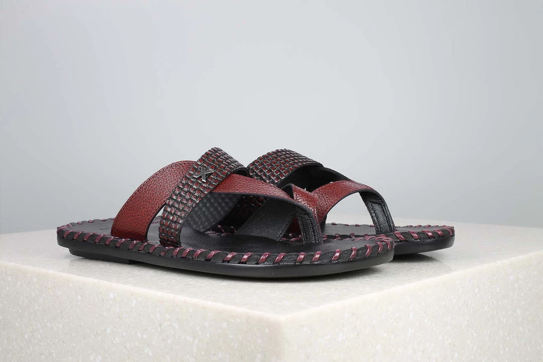 You have probably landed here because you were looking for something casual and comfortable. Yes, these Embossed Rope Thongs are one of the most comfortable slippers you will ever wear. The overlapping straps feature embossed patterns on one side and a toe ring. They are available in maroon colour.