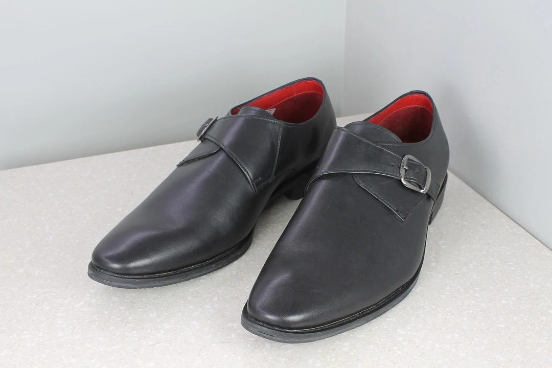 Buckle up, If you like experimenting with style, these formal monk shoes are something that you would love. They also come fitted with a buckle which makes it look unique. They come in black colour..