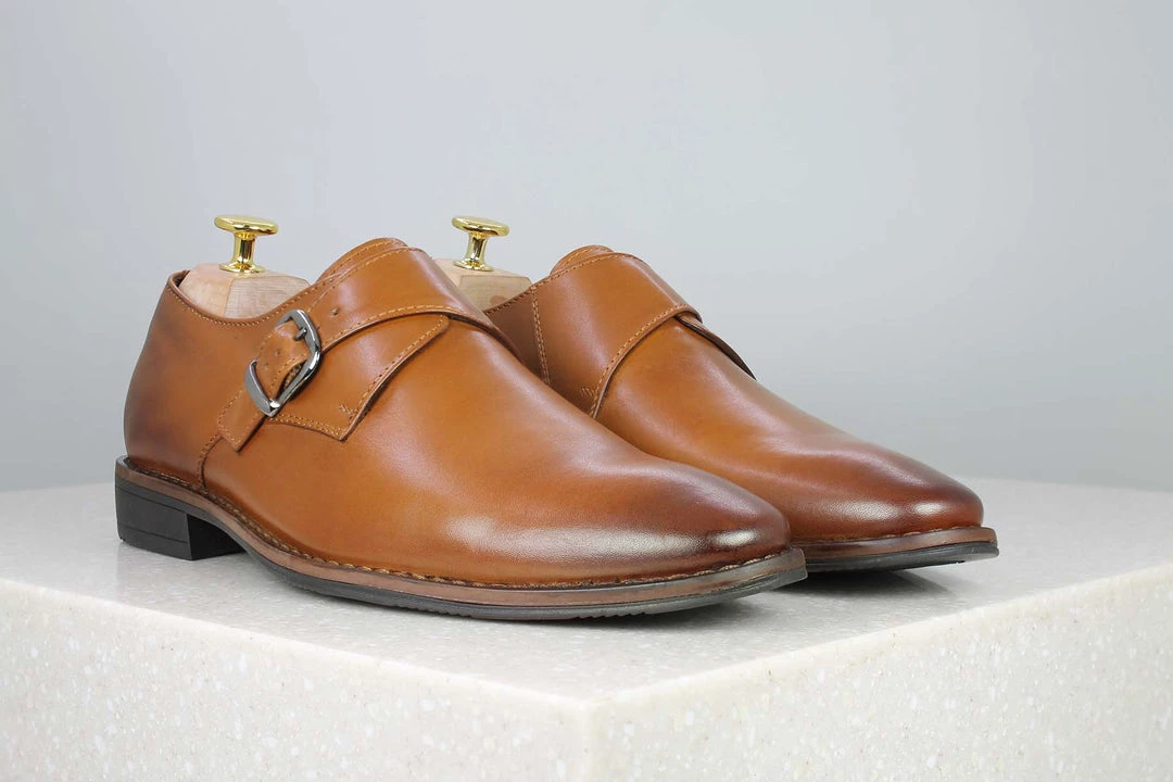 Buckle up, If you like experimenting with style, these formal monk shoes are something that you would love. They also come fitted with a buckle which makes it look unique. They come in tan colour..