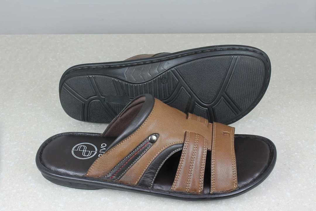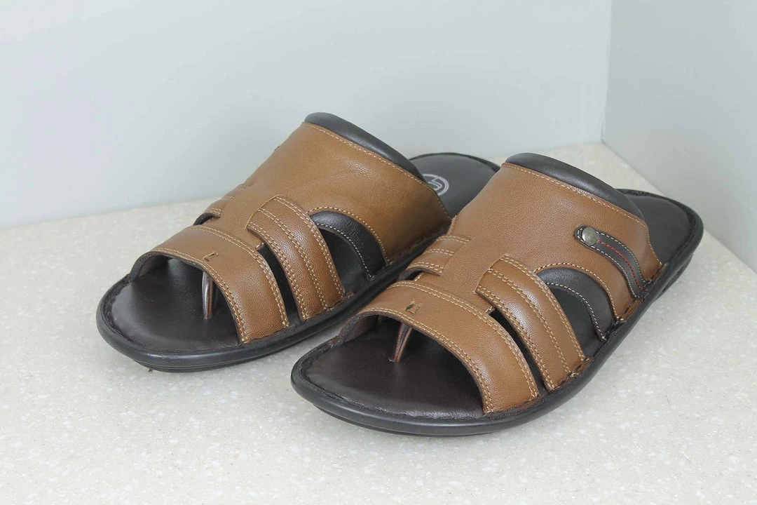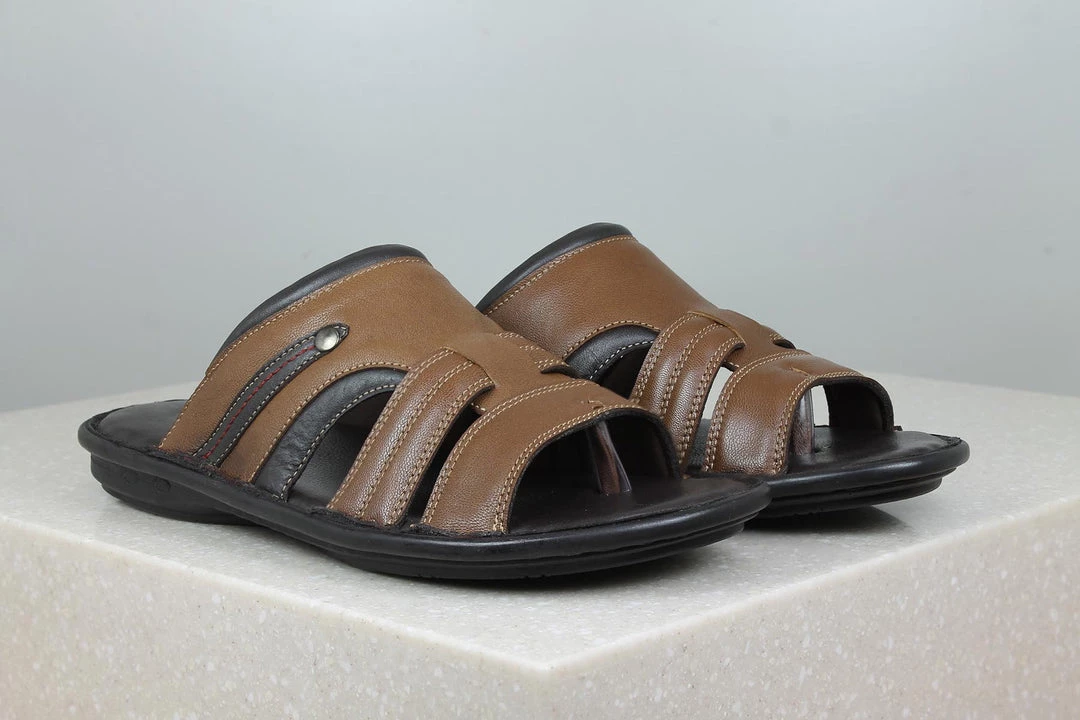 Smart leather straps top off with one toe a casually cool slipper with versatile appeal available in brown.