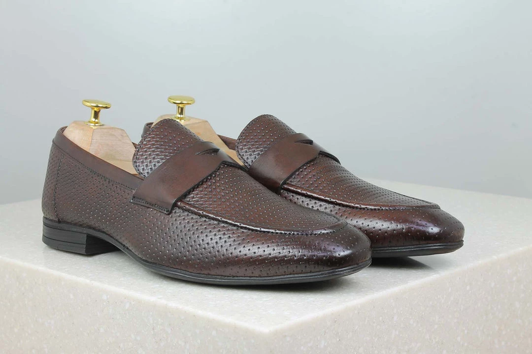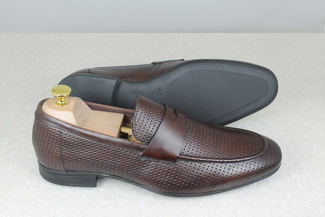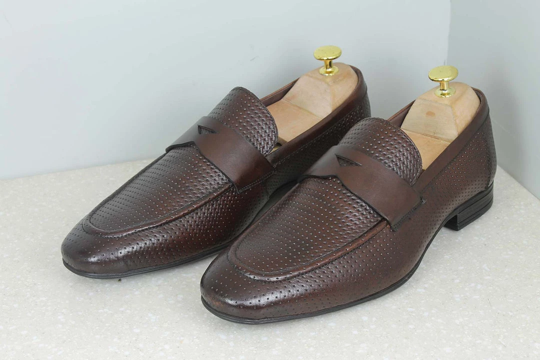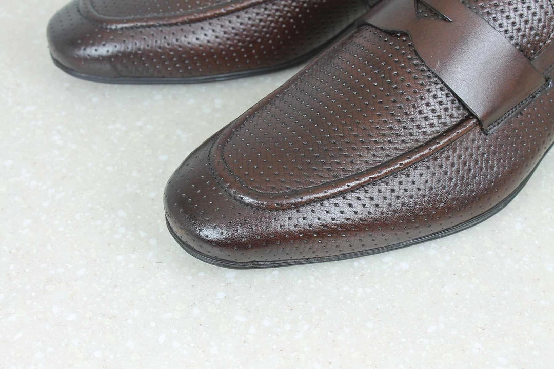 Gentlemen, we present to you the elegant yet humble, Perforated Vamp Slipons by Privo These are for people who love to keep it simple but aren’t afraid to experiment with some patterns. These formal slip ons feature perforated patterns on the vamps which make them look distinct. They also feature trims which add to your entire look You can get them in Dark brown colour. So let’s pack it, shall we?
