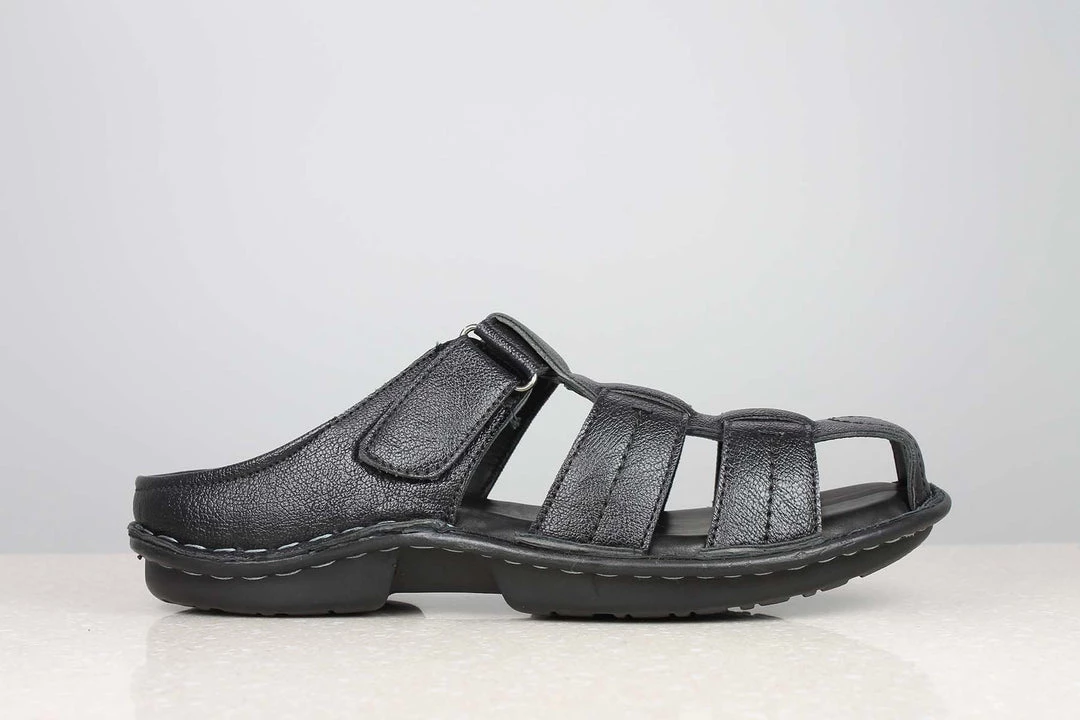 How about some sleek and stylish casual buntoes? Interested? Then these Stitched Down Closed Toes are something you will enjoy wearing. They feature straps across that help your feet breathe. Some people love that feeling. They also cover your toes. These buntoes will definitely go well with shorts, jeans, and even ethnic wears. Get them in black and enjoy.