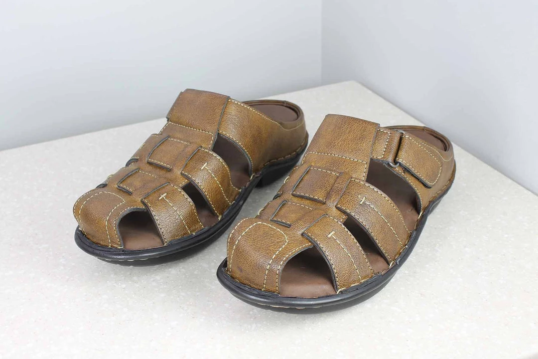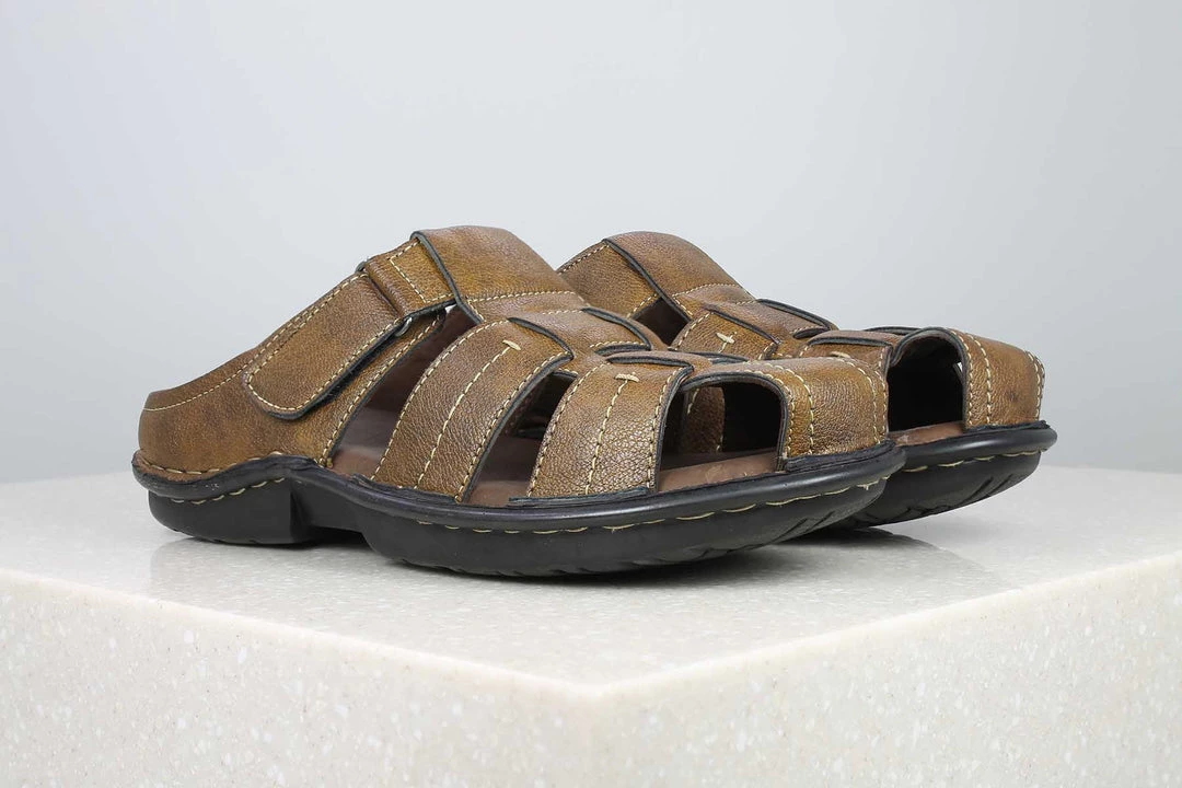 How about some sleek and stylish casual buntoes? Interested? Then these Stitched Down Closed Toes are something you will enjoy wearing. They feature straps across that help your feet breathe. Some people love that feeling. They also cover your toes. These buntoes will definitely go well with shorts, jeans, and even ethnic wears. Get them in brown and enjoy.