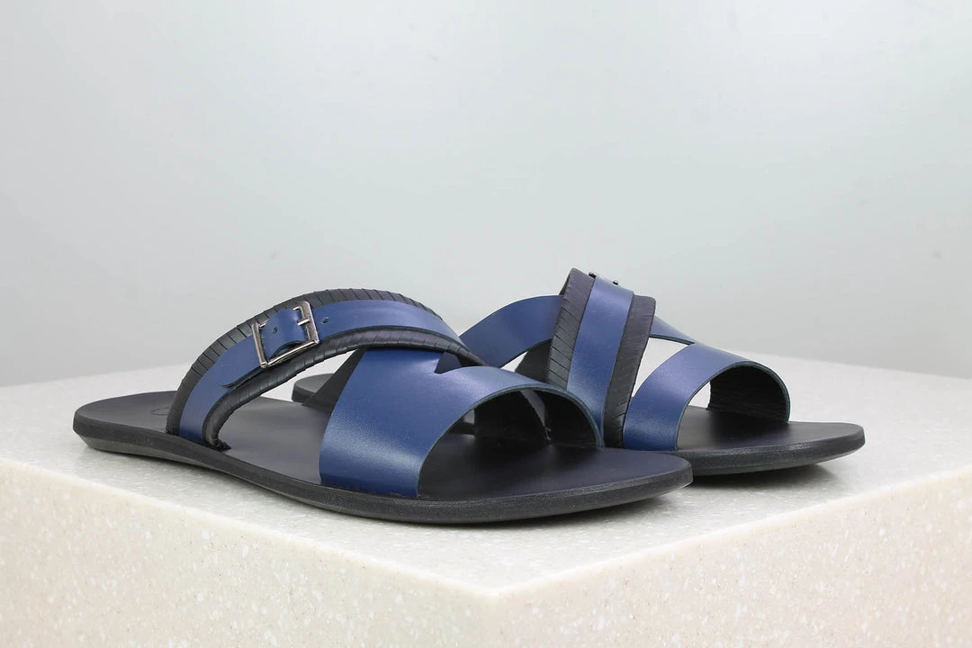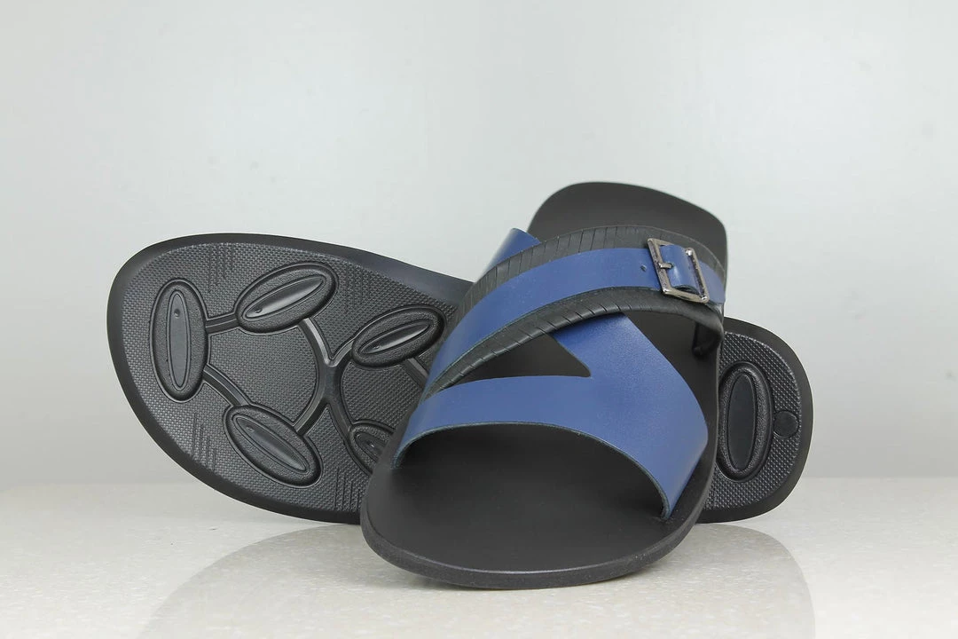 Say hola to casual comfort. Yes,it is a thing. Actually thongs, Thong Slippers! They are casual slippers with flat soles held by a strap with buckle. Made from leather, these Thong Slippers offer great comfort and they look quite unique. Match it up with your casuals and just enjoy. They are available in blue.