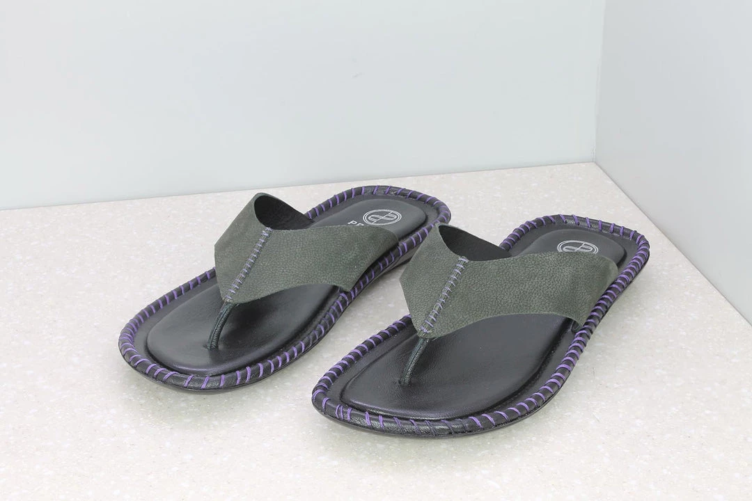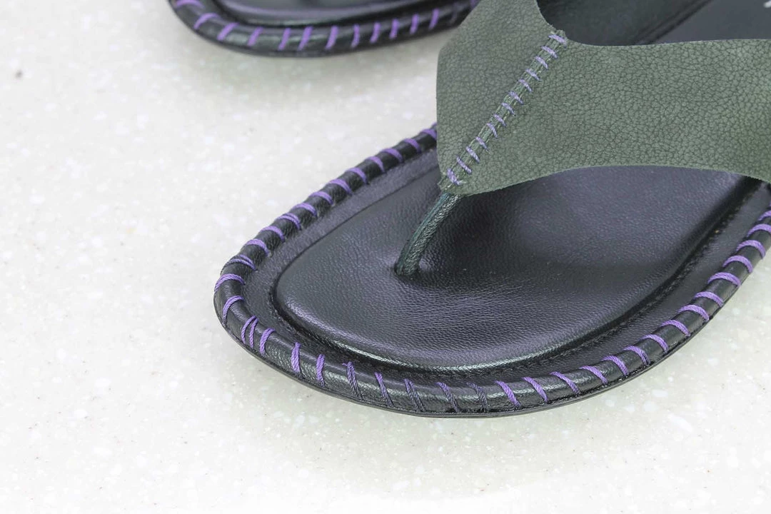 What is comfortable and light? These Toe Thongs! They are casual slippers with flat soles and are held by a strap in the centre. Made from leather, these Toe Thongs offer great comfort and are designed to look likewise. They come in Green. A must-have in your collection.