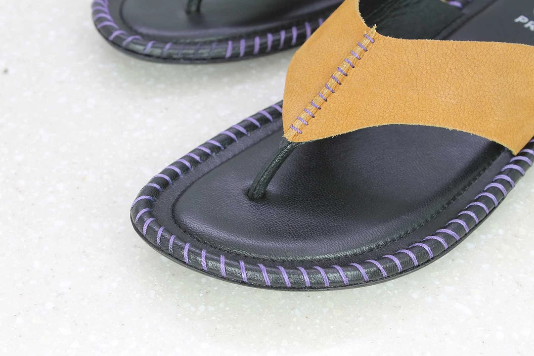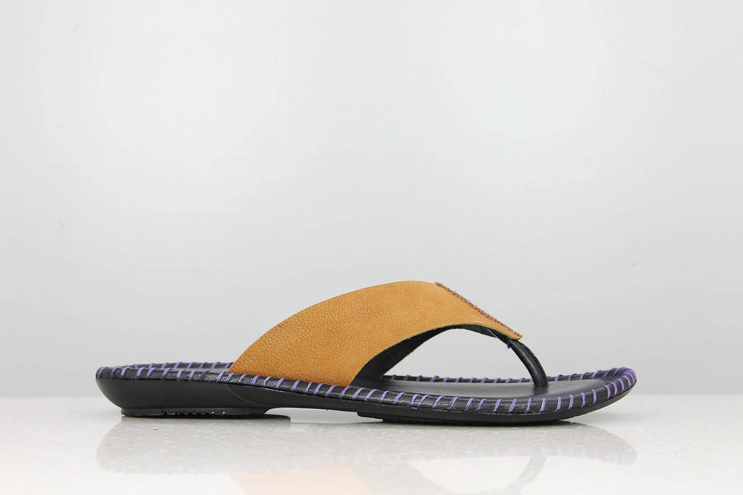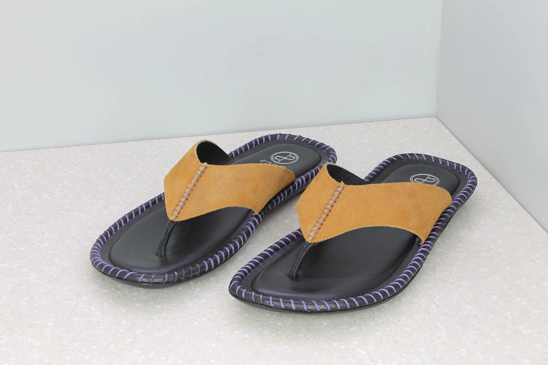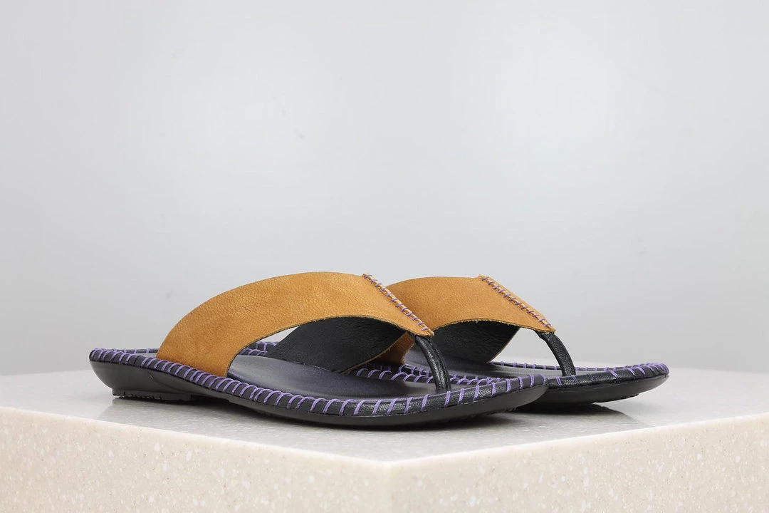 What is comfortable and light? These Toe Thongs! They are casual slippers with flat soles and are held by a strap in the centre. Made from leather, these Toe Thongs offer great comfort and are designed to look likewise. They come in Tan. A must-have in your collection.
